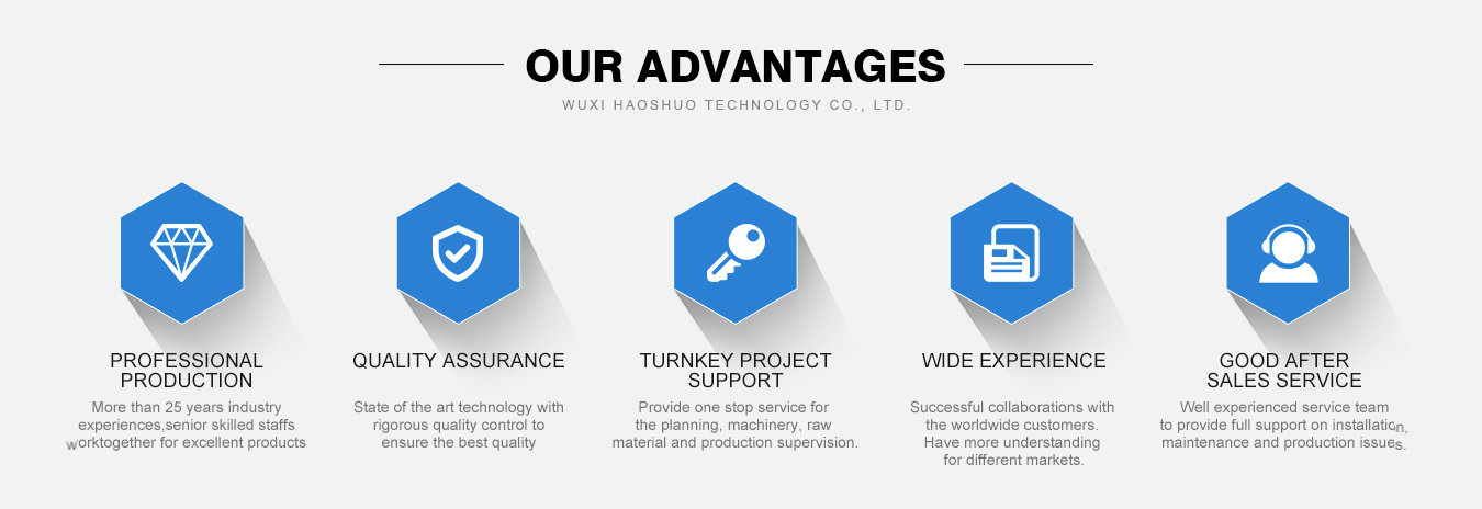 Contamos con equipos experimentados que trabajan para el diseño, la producción, la inspección y los servicios posventa. Los ingenieros y técnicos han estado trabajando en este campo durante veinticinco años. Nos mantenemos al día con las tendencias del mercado y de la industria, integramos fuentes superiores, mantenemos la innovación y el desarrollo. Tenemos la ventaja fundamental de un diseño consumado, tecnología avanzada y una calidad sobresaliente. Al mismo tiempo, nuestro equipo de servicio de ventas eficaz y profesional puede proporcionar a nuestros clientes la solución más razonable y los mejores productos basados en nuestros sólidos recursos técnicos y de productos. Dentro de nuestra empresa, nos damos cuenta de la importancia de la naturaleza de "ganar-ganar" de hacer negocios entre nosotros y nuestros clientes. Basándonos en esta perspectiva, no escatimamos esfuerzos para lograr avances en tecnología y producción, estamos firmemente comprometidos a proporcionar a nuestros clientes productos de alta calidad y una fuente de suministro constante y confiable. Y sabemos profundamente que la confianza es la base de los negocios, haremos todo lo posible para brindar el mejor servicio a nuestros clientes, esperamos construir y mantener la buena relación con cada cliente. Lo que hemos estado haciendo y lo que haremos es ofrecer máquinas de calidad confiable y un servicio de primera clase a clientes de todo el mundo. Ya hemos tenido colaboraciones exitosas con los clientes de más de cincuenta países y regiones. Y hemos realizado muchos proyectos llave en mano. Nuestro objetivo es ser un socio confiable y digno de confianza para los clientes de todo el mundo. Creemos que nuestro servicio profesional, personalizado y conveniente creará un mayor valor.